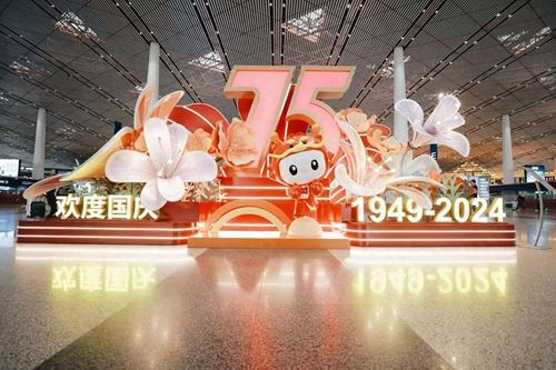 “花海”与“锦绣山河”共舞,节日景观惊艳亮相首都机场