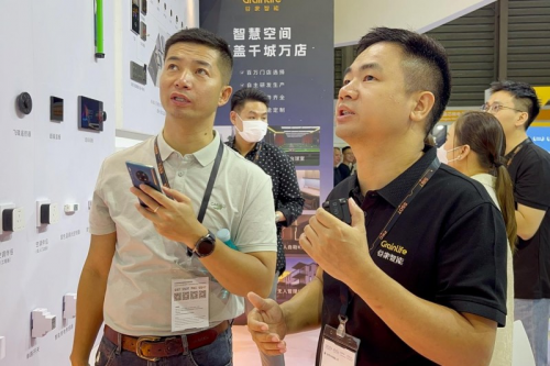 除此之外,依托数字化转型,创新节能的智慧办公系统、有线与无线多种灵活的智慧酒店系统,以及能满足智能生活全场景、自研自产的300+ IOT智能设备也成了此次展会观众驻足谷家智能的关注点。