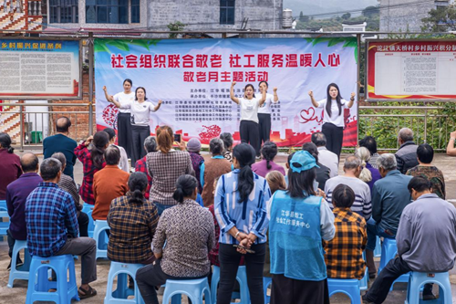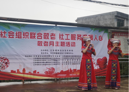 本网永州讯(通讯员:杨建玲 姚小兰)为进一步发挥社会组织孵化培育基地在孵化、培育、扶持方面的作用,切实提高社会组织参与养老服务、民生保障的能力,在湖南省永州市江华瑶族自治县民政局的指导下,10月19日,江华县社会组织孵化培育基地携手8家机构走进沱江镇天桥村,开展“社会组织联合敬老,社工服务温暖人心”敬老活动,县民政局游春梅股长和活动承办单位长沙市维家社会工作服务中心负责姚小兰莅临现场,活动内容包括文艺表演、义剪、义诊、慰问和互动游戏等,近100位居民参加。